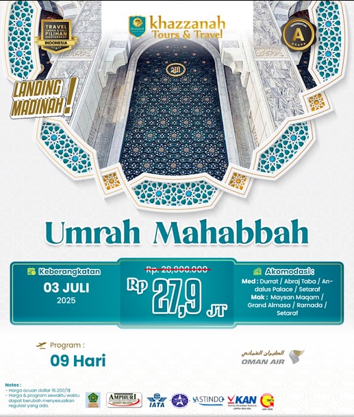 Khazzanah Tour resmi dan terdaftar di KEMENAG RI dan telah berdiri sejak tahun 2001